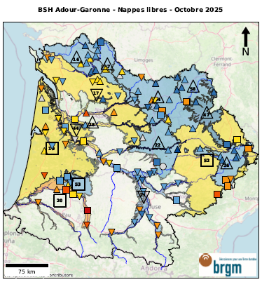 Le Bulletin de Situation des Nappes libres du bassin Adour-Garonne est mis à jour chaque mois et téléchargeable :