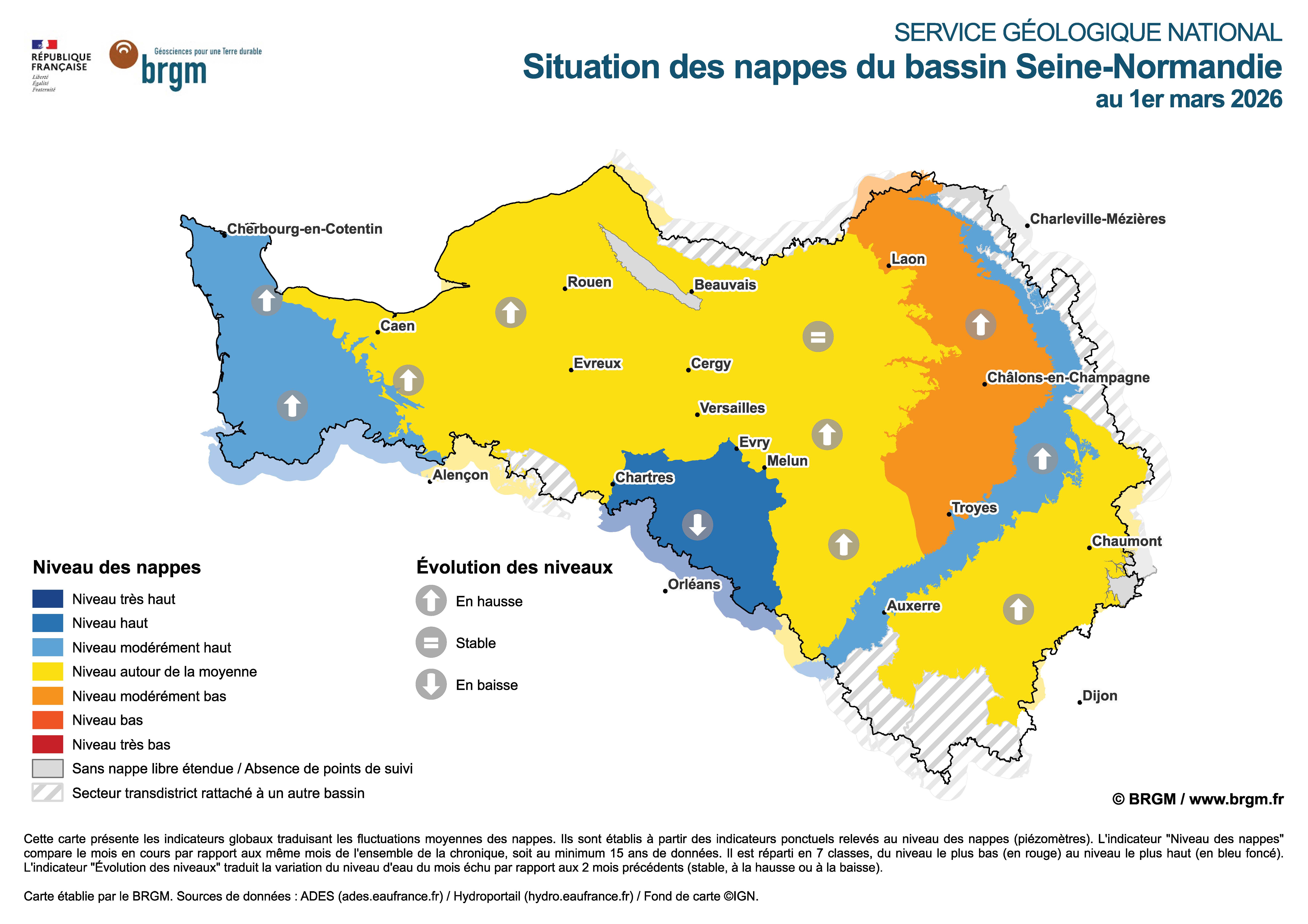 Bulletin de Situation Hydrogéologique du bassin Seine-Normandie - 1er mars 2026