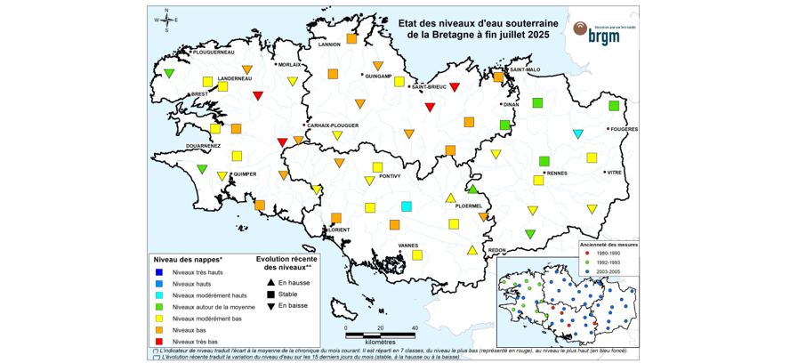 Situation des niveaux de nappe en Bretagne à fin juillet 2025