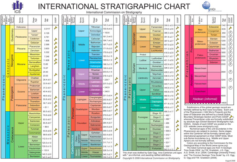 Cette échelle fait correspondre des couches ou des ensembles de couches géologiques d’origine sédimentaire, à des intervalles de temps :