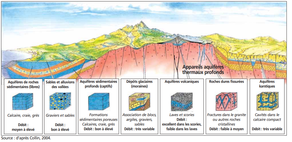 Deux catégories de réservoirs aquifères peuvent être distinguées :