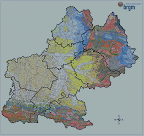 La carte géologique à l’échelle 1/1 000 000 permet de distinguer les grands ensembles géologiques de la région.