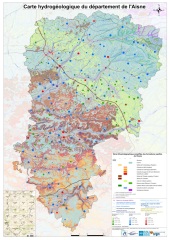 - Réalisée sur une feuille A0, une carte hydrogéologique départementale complète l’atlas. Cet outil de travail sous format papier représente une synthèse de l’ensemble de données rassemblées.
