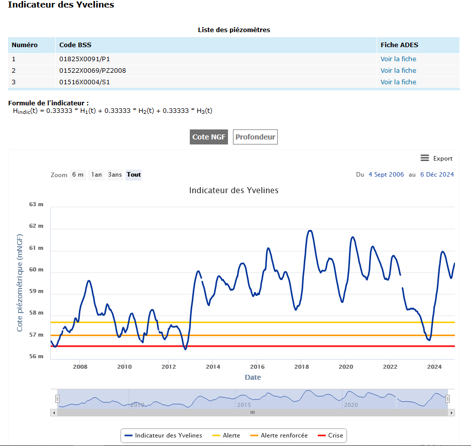 Il est possible de consulter les indicateurs de l’Albien et des Yvelines sur le