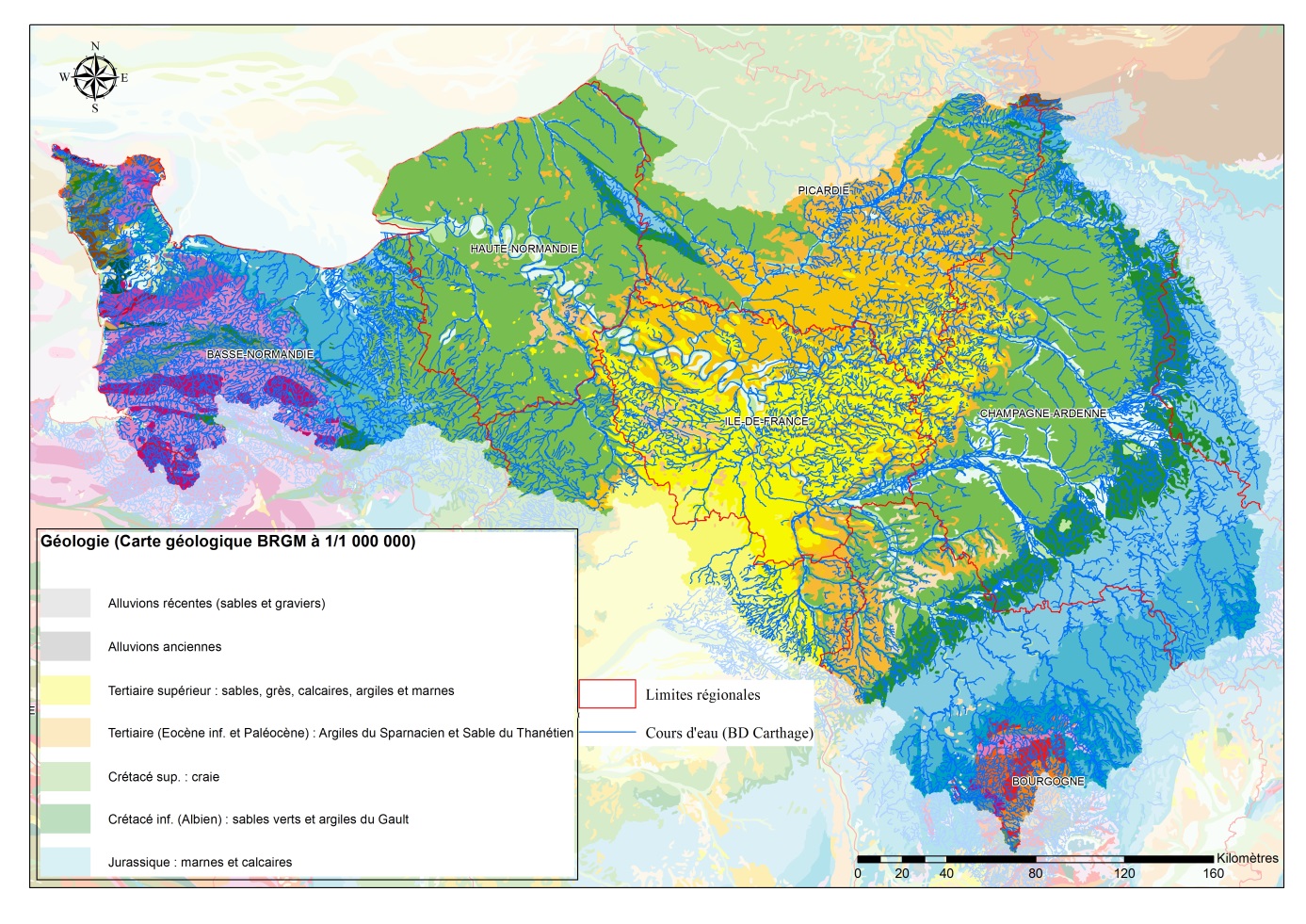 , délimitant pour chaque cours d’eau les tronçons drainant la rivière et les tronçons en perte.