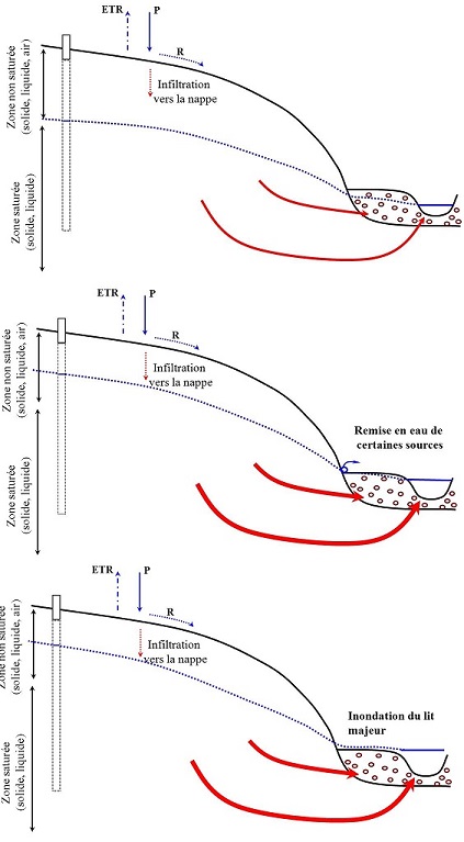 Enfin, les nappes alluviales sont particulièrement concernées du fait de la relation hydraulique possible avec les cours d’eau associés : nappes alluviales de la Seine, de la Marne , de l’Oise etc…